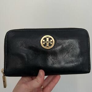 Tory Burch Black Leather Continental Ziparound Wallet GS