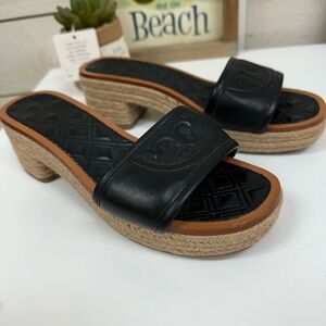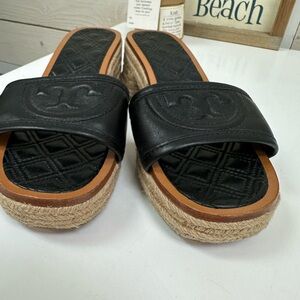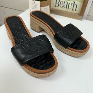 Tory Burch Black Leather Espadrille Slide Sandals – Size 7