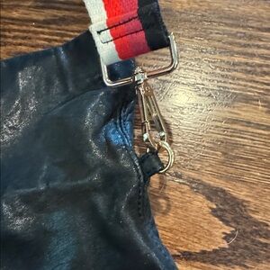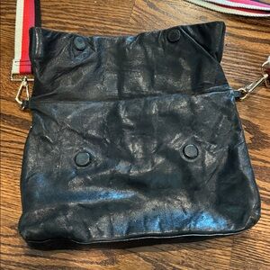 Tory Burch Black Leather Fold Over Purse with gold hardware