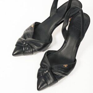 Tory Burch Black Leather Knotted Pointed-Toe Slingback Pumps