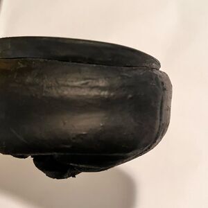 These Tory Burch Reva ballet flats are in a wearable pre-owned condition. They show evidence of previous repairs on the leather uppers (front, back, and sides), although these are not prominent and would require close inspection to be noticed. The soles exhibit significant wear, with the tread worn smooth in places and some material loss at the front. When worn, the shoes maintain their classic style, with the main signs of wear being largely unnoticeable to a casual observer.