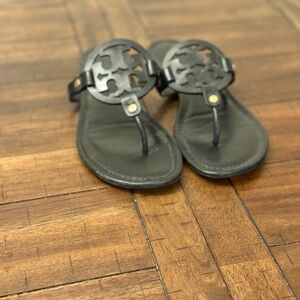 Chic black sandals with iconic logo design. Ideal for everyday style.