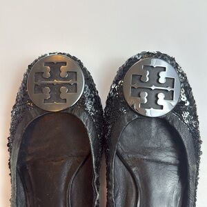 Tory Burch Black Leather Sequin Loafers with Classic Slip-On Design Size 8.5