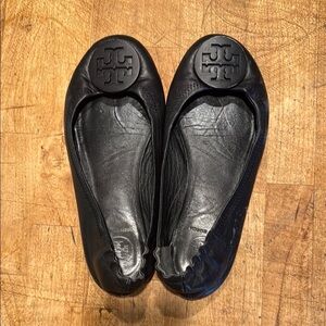 Tory Burch Black Leather Slip-On Flats