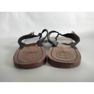 Tory Burch Black 🖤 Leather Thong Sandals Viridian Horseshoe Bit Buckle 9.5 M