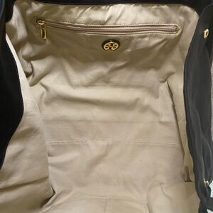 Description: This tote is known for its durable recycled nylon construction with patent faux leather trim and a prominent debossed double-T logo.