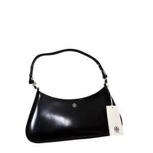The Tory Burch Emerson Shoulder Bag in classic black is a timeless and versatile piece that blends everyday practicality with understated luxury. Crafted with signature Tory Burch attention to detail, it’s designed for effortless sophistication.