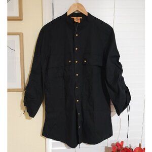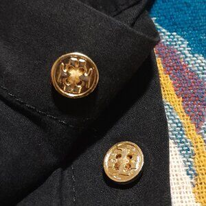 Tory Burch Black Ling Button Up Blouse Gold Logo Buttons sz 12