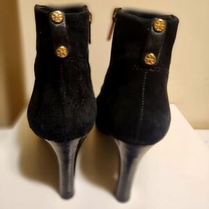 Tory Burch Black "Very Luxe" Suede Round Toe Stiletto Zip Ankle Boots