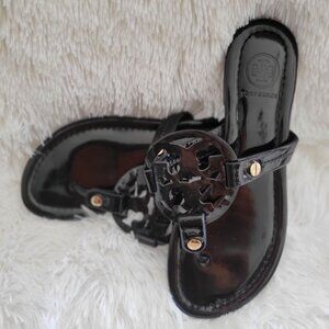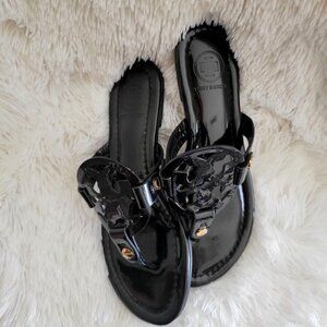 Tory Burch Black Miller Patent Calf Slip-On Thong Sandals -EU 38