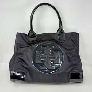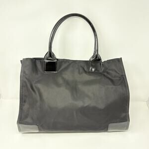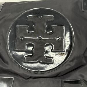 Tory Burch Black Nylon Patent Leather Logo Extra Large Handbag Ella Tote Bag