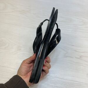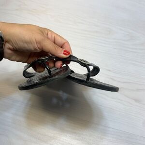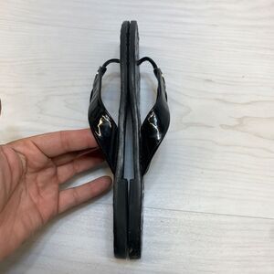 Tory Burch Black Patent Leather Thong Sandal Flip Flop Logo Size: 6 M