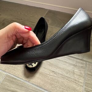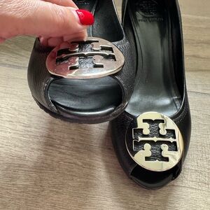 Authentic Black Tory Burch Sally 2 Black Peep-Toe Wedge From My Personal Closet