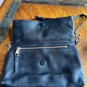 Tory Burch Black Pebbled Leather Fold Over Shoulder Bag
