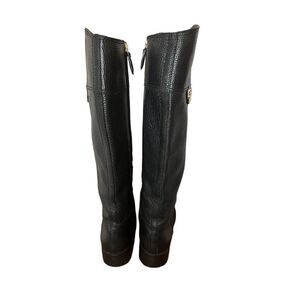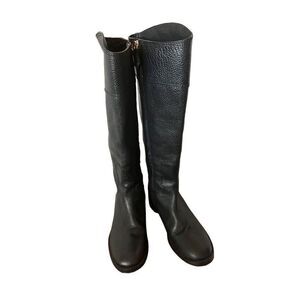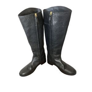 Tory Burch Black Pebbled Leather Knee High Riding Boots W/Gold Logo Womens 7