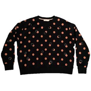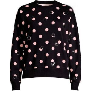 Tory Burch Black Pink Sequin Sweater Sweatshirt Polka Dot Crew Neck Long Sleeve