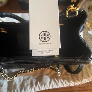 Chic black quilted design. Gold chain accents. Iconic logo detail.