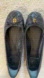 Experience timeless elegance with these Tory Burch flats, black weave design and a chic gold charm on the toe. Super comfortable leather shoes with a rounded toe and flat sole, perfect for everyday wear.