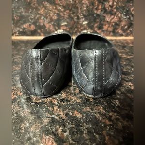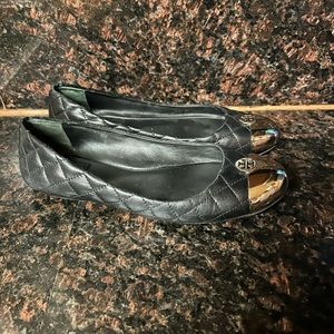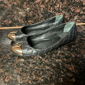 Tory Burch Black Quilted Leather Kaitlin Metal Cap Toe Ballet Flats Size 7