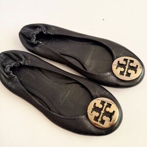 Tory Burch Black Reva Leather Black Ballet Flats Size 8