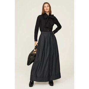 Tory Burch Black Scalloped Poplin Bow Blouse Size 14 NWT Tie-Neck Preppy $498