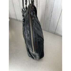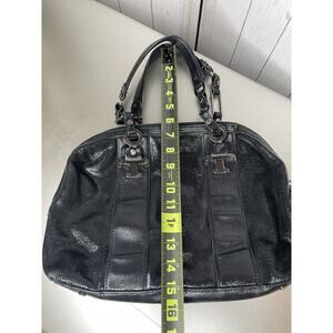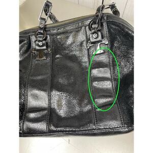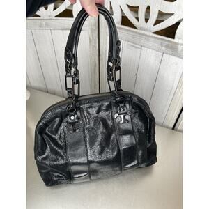 Tory Burch Black Sheen Crackle Leather Top Handle Bag Chunky Hardware Y2K