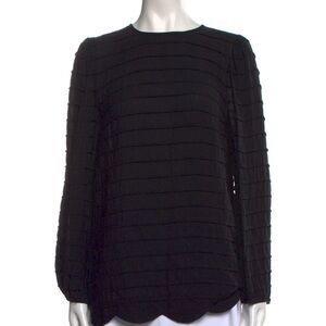 Tory Burch Black Silk Blouse with Ruffle Detailing and Scalloped Hem