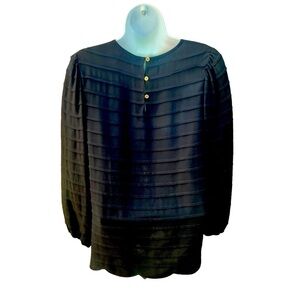 Tory Burch Black Silk Long Sleeve Ruffle Trim Blouse Top Size 6