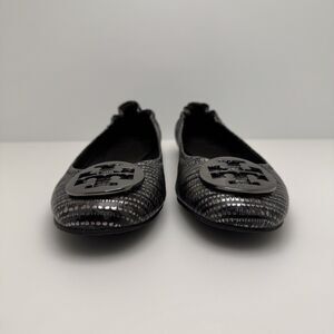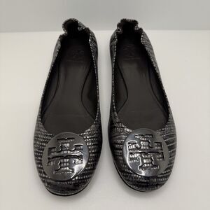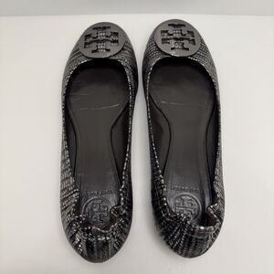Tory Burch Black Silver Print Ballet Flats Silver Logo Women’s Size 9 M