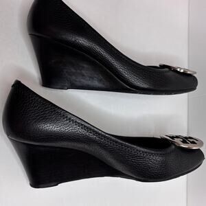 Tory Burch Black & Silver Sally Wedge Size 8.5M