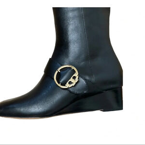 Tory Burch Black Sofia Leather Wedge Boot Sz: 5M
