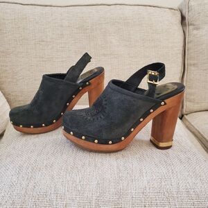 Tory Burch Black Suede Brayden Slingback Clogs sz 7