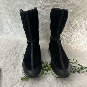 Tory Burch Black Suede Shearling Lined Mid Calf Snow Winter Boots size 6.5