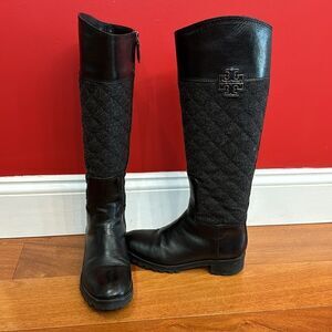 Tory Burch Black Two Tone Mixed Media Leather Riding Boots Equestrian size 5.5 M I’m excellent condition.