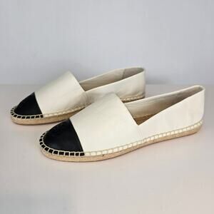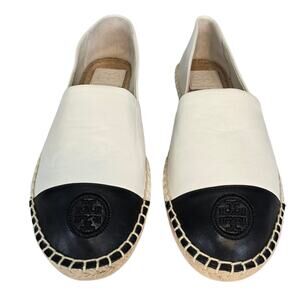 Tory Burch Black White Colorblock Espadrilles Flat Leather Upper Size 10.5 SEE