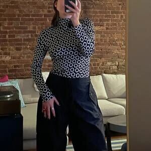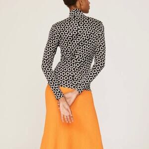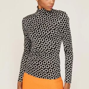Tory Burch Black White Flower Top SIZE 8 Bodycon Long Sleeve Mockneck Silk $448