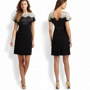 Tory Burch Black White Lace Daphne Beaded Buttoned Dress, SZ 14
