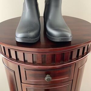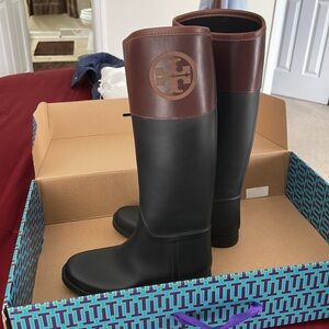 Tory Burch Black and Brown Logo Rain Boots