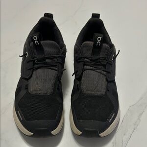 These Tory Burch flats showcase a timeless design with a sleek black finish and a striking gold logo medallion on the toe. Crafted for comfort and style, they feature a classic ballet flat silhouette with a smooth, polished leather exterior. The slip-on design and minimal heel height make them perfect for versatile wear.