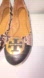 Stylish flats with a snakeskin pattern. Features iconic gold logo
