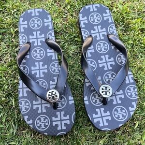 Tory Burch Black and Gray Flip Flops