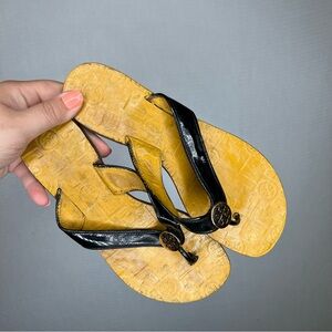 Tory Burch | Black and Yellow Quilted Sandals Thong Flip Flops Size 6.5