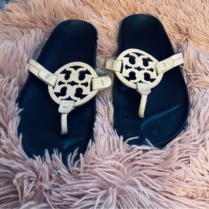 Tory Burch Black and cream Sandals size 7M Elegant sandals with iconic logo design. Perfect for any occasion.