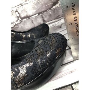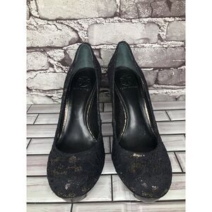 Tory Burch Black Leather Floral Fabric Platform Stiletto High Heels Women Sz 8M