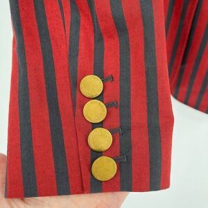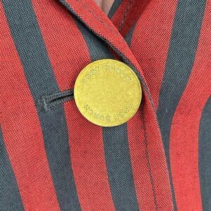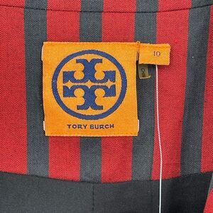 Tory Burch Blazer Jacket Red Navy Stripe Logo Embossed Buttons Lined Women 10