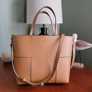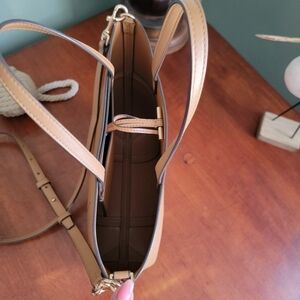 Measures approximately 10" wide x 9" high x 4" deep, with an 4" handle drop and a 23" removable adjustable/crossbody shoulder strap.