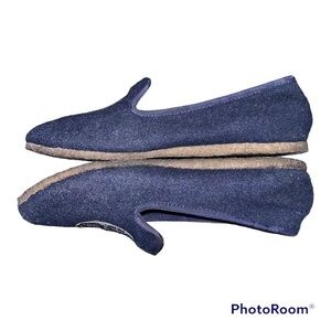 Tory Burch Navy Blue Felt Faux Fur Lined Billy Logo Slippers Loafers Slip On Shoes size 8