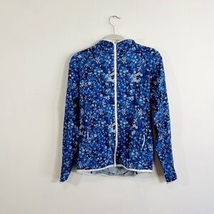 Stylish blue floral jacket. Lightweight and comfortable windbreaker. Perfect for casual outings. Very cute!