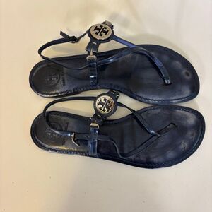 Great pre-owned condition Tory Burch Blue Leather Thong Sandals with Back Strap Size 9