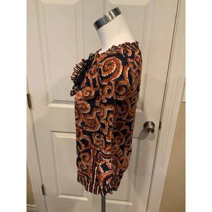 Tory Burch Blue & Orange Paisley Tunic w/Ruffle & Tassel Tie Neck Top, Size 0